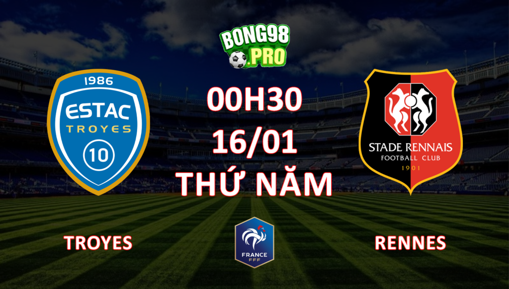Nhận định bóng đá BONGVIP _ Trận Troyes vs Rennes 00h30 ngày 16/1 (Vòng 1/16 – Cúp QG Pháp 2024/25)