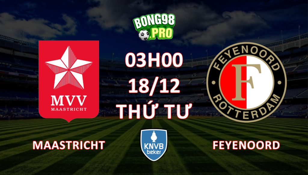 Trận đấu giữa Maastricht và Feyenoord là cuộc so tài không cân sức, với Feyenoord hoàn toàn vượt trội về mọi mặt. Tuy nhiên, bóng đá luôn có những bất ngờ, và Maastricht sẽ chiến đấu hết mình để tạo ra một kết quả có lợi. Dù vậy, khả năng Feyenoord giành chiến thắng đậm là rất cao, và họ sẽ hướng đến mục tiêu bảo vệ ngôi vô địch Cúp QG Hà Lan.