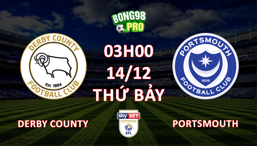 Nhận định bóng đá BONG98.PRO _ Trận Derby County vs Portsmouth 3h00 ngày 14/12 (Vòng 21 – Hạng nhất Anh 2024/25)