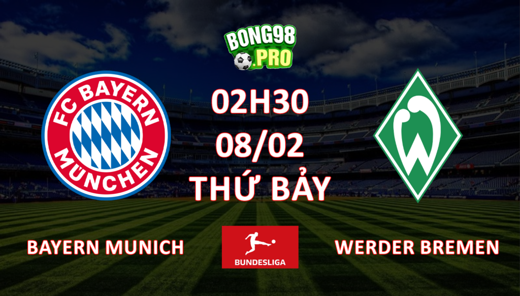 Nhận định bóng đá BONGVIP _ Trận Bayern Munich vs Werder Bremen 02h30 ngày 8/2 (Vòng 21 – Bundesliga 2024/25)