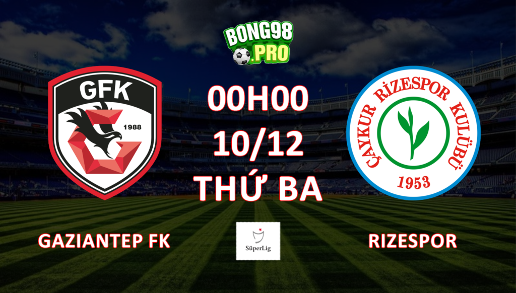Nhận định bóng đá BONG98.PRO _ Trận Gaziantep vs Rizespor 0h00 ngày 10/12 (Vòng 15 – VĐQG Thổ Nhĩ Kỳ 2024/25)