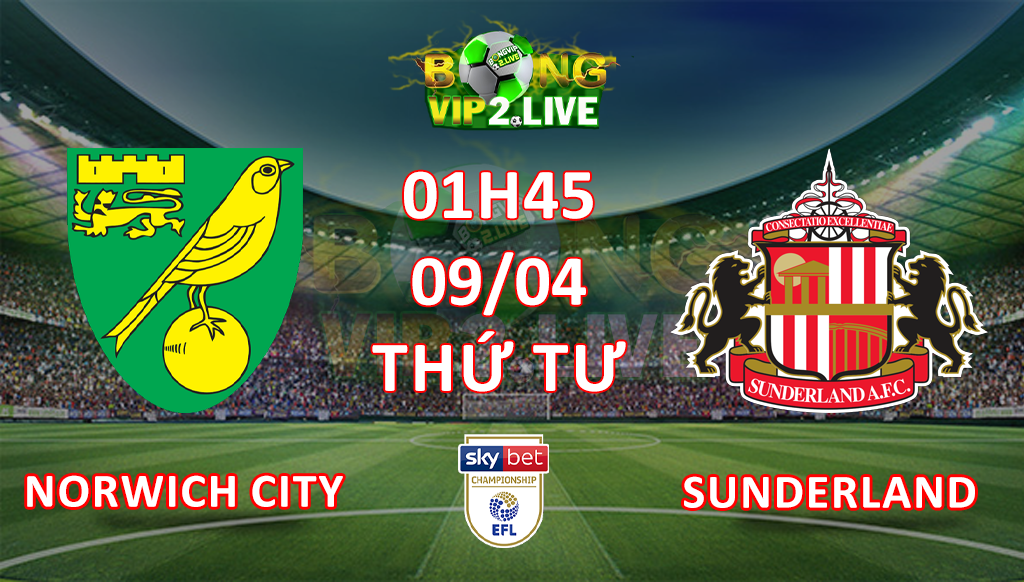 Nhận định bóng đá BONGVIP2.LIVE _ Trận Norwich vs Sunderland 01h45 ngày 9/4 (Vòng 41 – Hạng nhất Anh 2024/25)