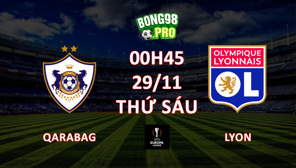 Nhận định bóng đá BONG98.PRO _ Trận Qarabag vs Lyon 00h45 ngày 29/11 (Europa League 2024/25)
