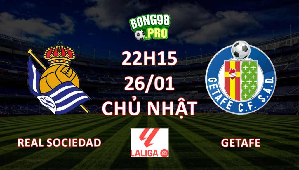 Ở vòng đấu này, Sociedad sẽ được thi đấu trên sân nhà Reale Arena, nơi họ đang có phong độ ấn tượng: không chỉ bất bại mà còn giành tới 6 chiến thắng trong 7 trận gần nhất trên mọi đấu trường. Đối thủ Getafe sắp tới không phải là thử thách quá lớn với họ. Cụ thể, trong 3/4 lần tiếp đón Getafe gần nhất tại Reale Arena, chiến thắng đều thuộc về Sociedad.
