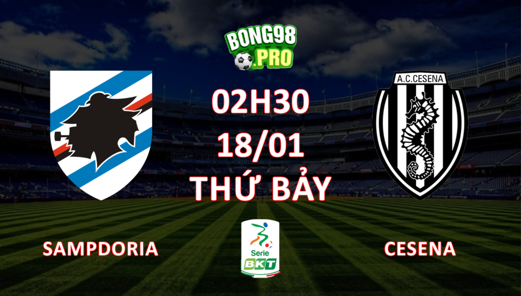 Nhận định bóng đá BONGVIP _ Trận Sampdoria vs Cesena 02h30 ngày 18/1 (Vòng 22 Serie B – Hạng 2 Italia 2024/25)