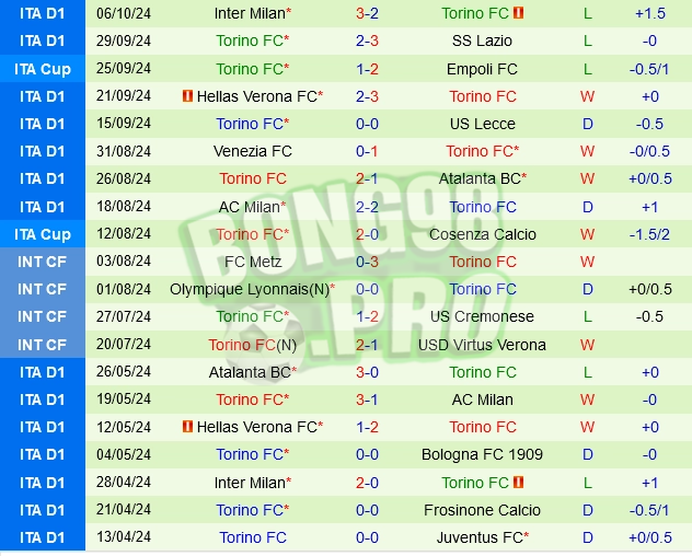 Thành tích gần đây của Torino