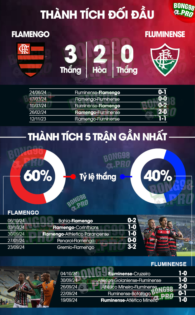 Lịch sử đã chứng minh Fluminense rõ ràng là đối thủ ưa thích của Flamengo. Vốn đang thua liểng xiểng mà còn phải chơi trên sân khách, sẽ là bất ngờ nếu Flamengo kiếm được điểm khi ra về.