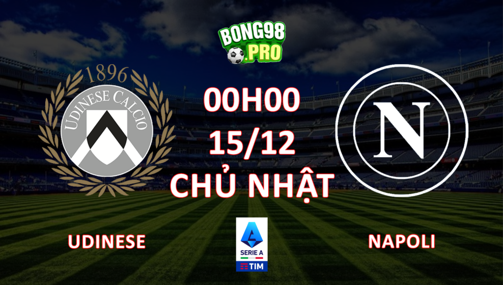 Nhận định bóng đá BONG98.PRO _ Trận Udinese vs Napoli 00h00 ngày 15/12 (Vòng 16 Serie A)