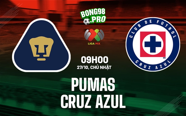 Nhận định bóng đá BONG98.PRO _ Trận Pumas vs Cruz Azul 9h00 ngày 27/10 (VĐQG Mexico 2024/25)