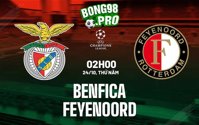 Nhận định bóng đá BONG98.PRO _ Trận Benfica vs Feyenoord 2h00 ngày 24/10 (Champions League 2024/25): Chuyến đi bão táp